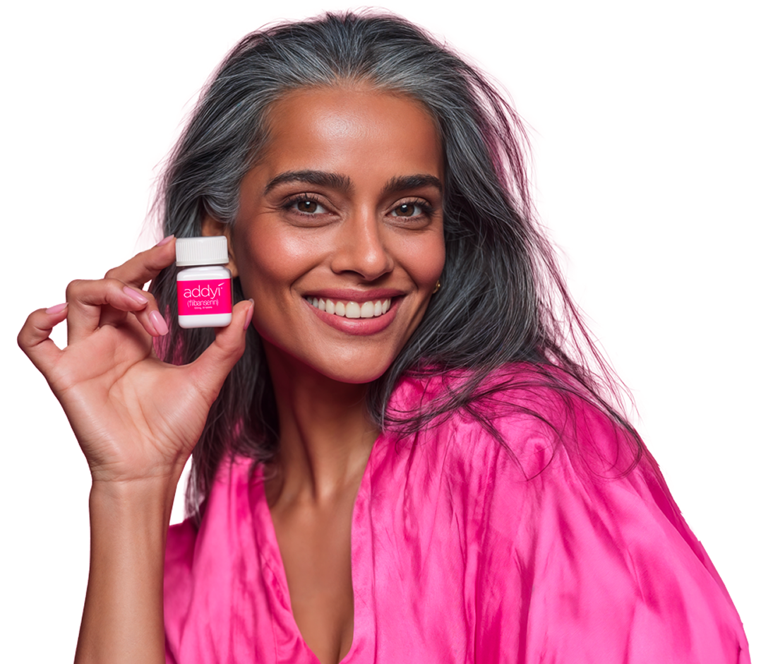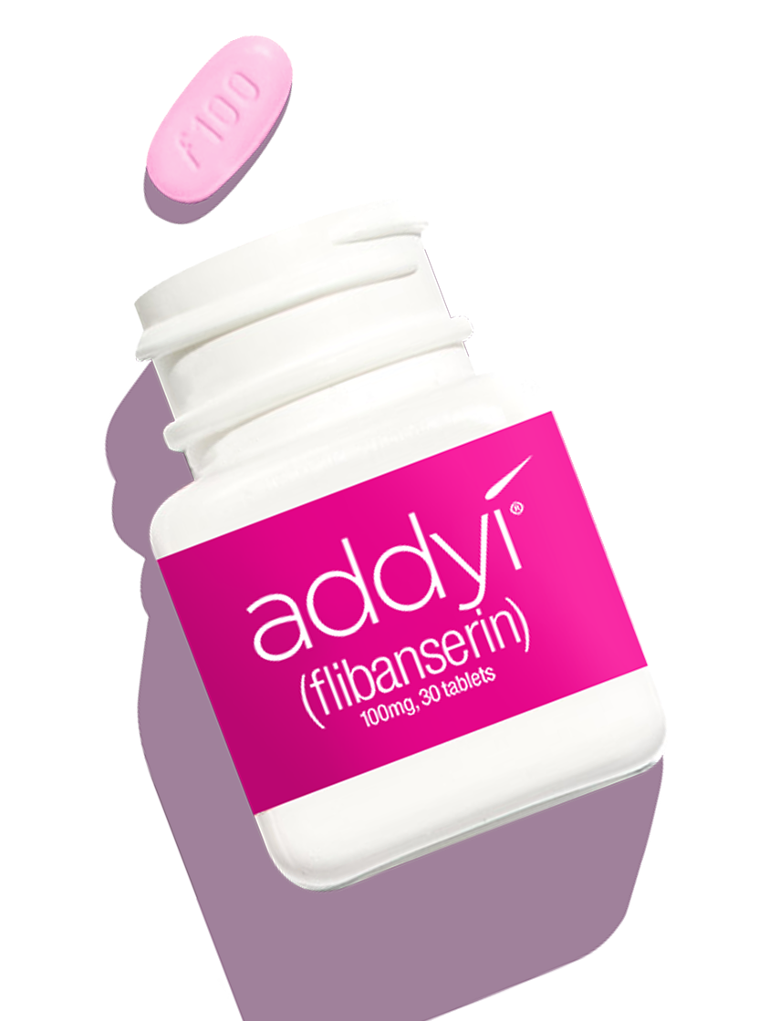 See full Prescribing Information, including Boxed Warning regarding severe low blood pressure and fainting in certain settings, and Medication Guide at addyi.com/pi.